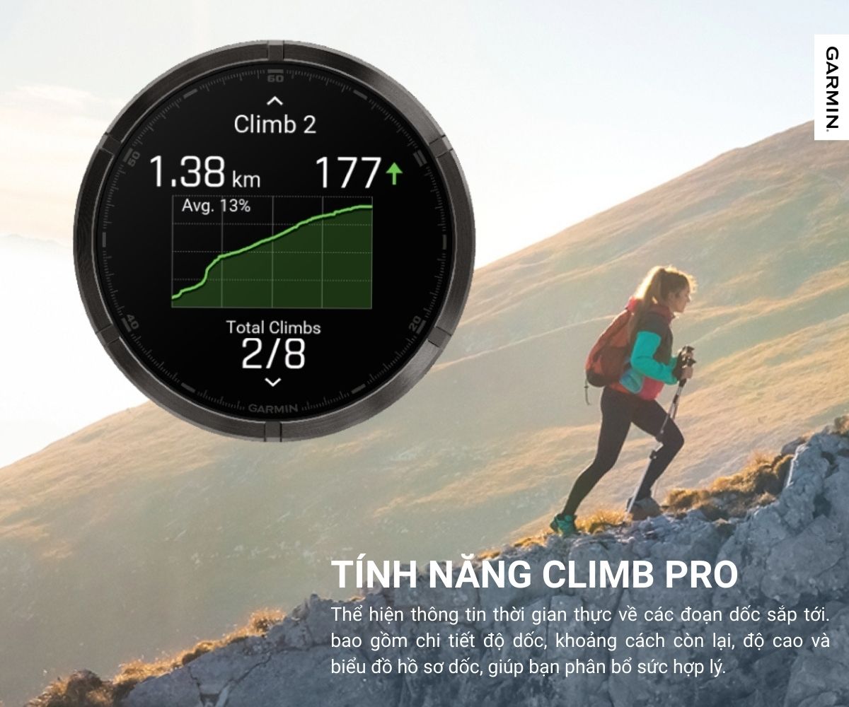 Tính năng ClimbPro phân tích chi tiết từng đoạn leo dốc trên route đã tải sẵn: độ dài, độ dốc, độ cao tích lũy và vị trí còn lại. Nhờ đó, runner có thể chủ động phân phối năng lượng, tránh “cháy” quá sớm ở những climb dài và kỹ thuật.